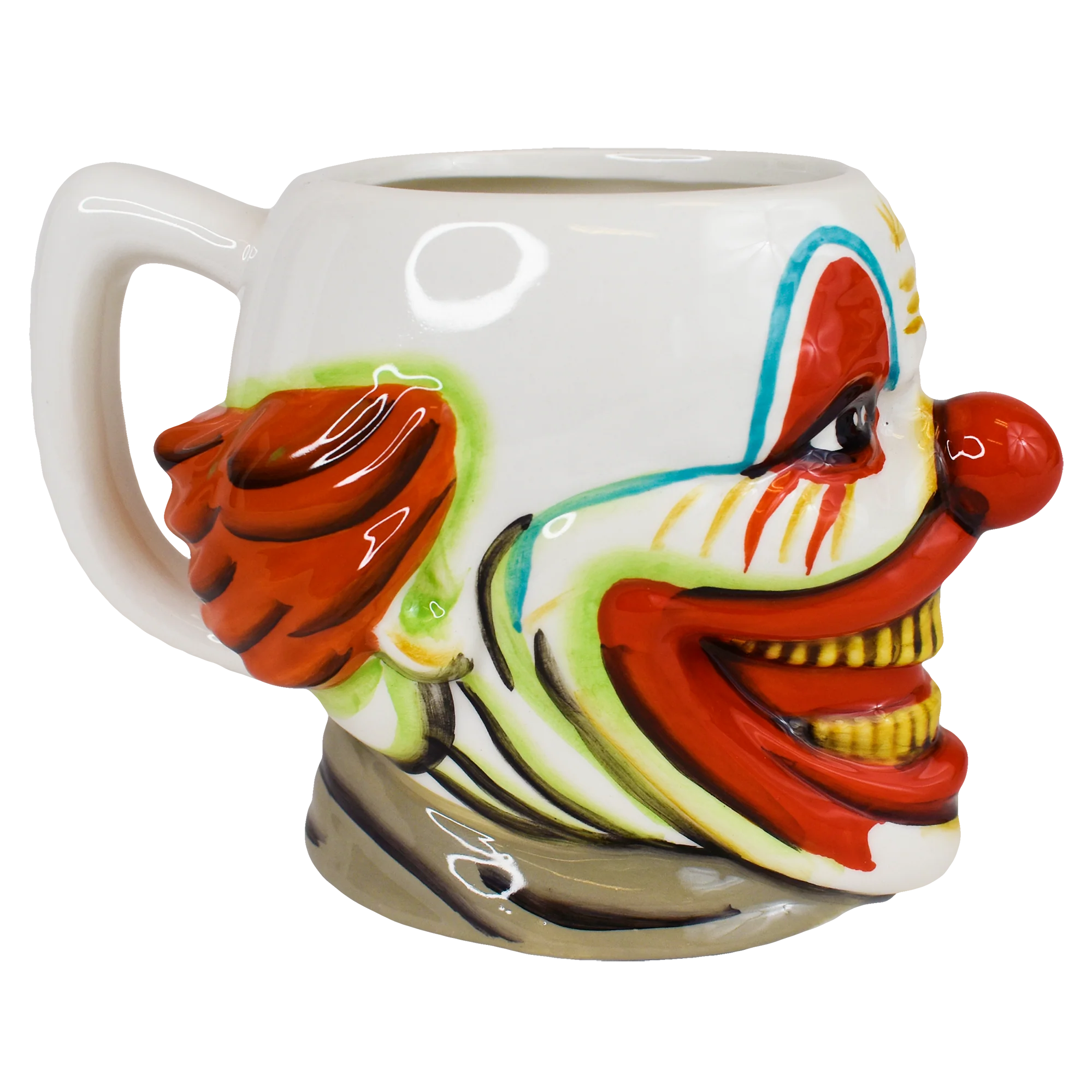Get ready to clown around with the Six Flags Fright Fest Clown Head Mug! This ceramic mug features a spooky clown head design, perfect for sipping on your favorite beverage during the Halloween season. Don't miss out on this quirky and fun addition to your mug collection!