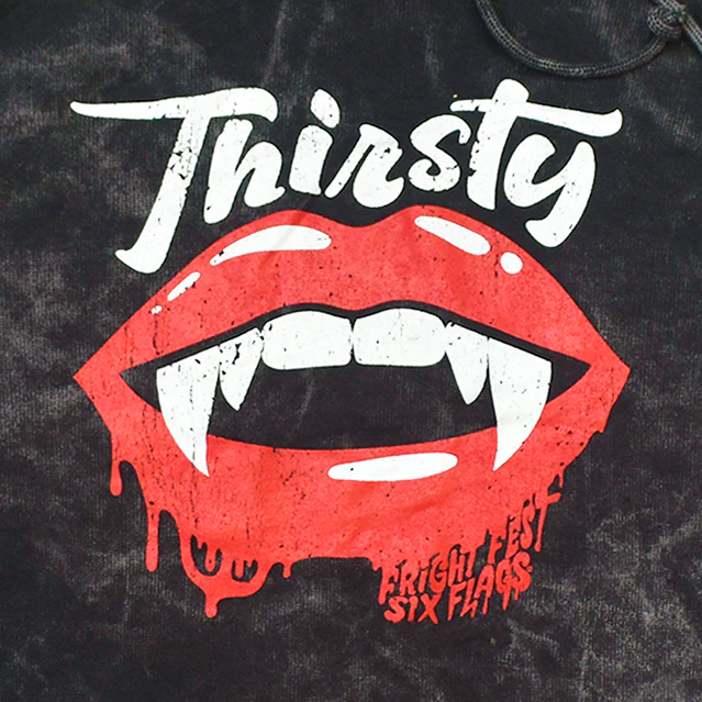 Quench your thirst for Fright Fest year round with this Vintage Wash hoodie.